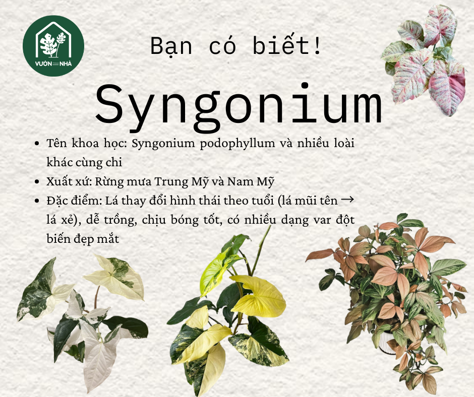 Vườn Trong Nhà sở hữu nhiều giống Syngonium độc quyền, từ những dòng phổ thông đến các cây variegated cao cấp. Tất cả đều được chăm kỹ lưỡng, chọn lọc form lá – màu sắc – sức khỏe trước khi đến tay khách hàng.