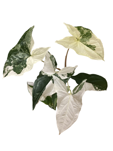 Syngonium Milk Confetti – nền lá trắng sữa pha đốm hồng nhẹ.