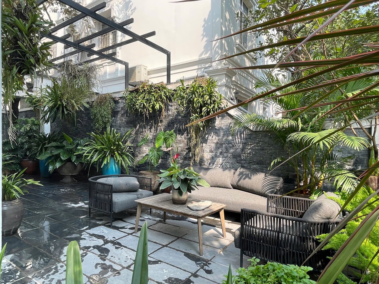 Công trình hướng tới việc tạo nên một khu vườn sống động, đa tầng sinh thái, nơi mỗi bước chân di chuyển trong khuôn viên đều mang lại cảm giác thư giãn như đang bước vào một khu nghỉ dưỡng nhiệt đới thu nhỏ giữa lòng biệt thự.