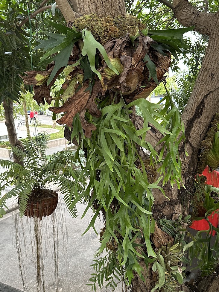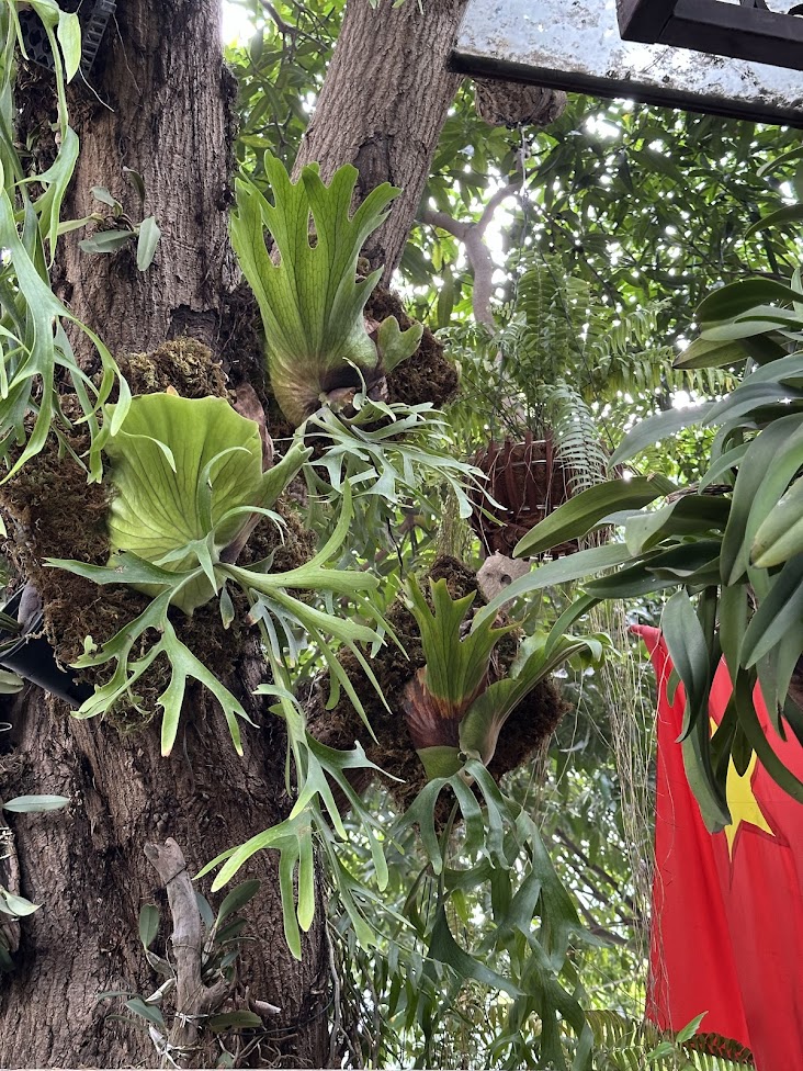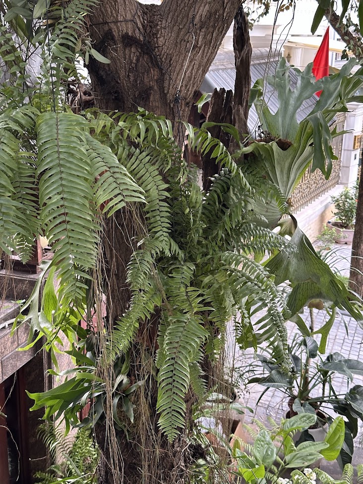 - Mô tả: Sân vườn decor ổ rồng gắn thân cây xoài là công trình cảnh quan xanh được Vườn Trong Nhà thực hiện với định hướng giữ nguyên và tôn vinh hai cây xoài cổ thụ trước hiên nhà. Hệ ổ rồng, lan và dương xỉ được bố trí bám thân tự nhiên, kết hợp Monstera Albo trồng dưới bồn cho leo thân, tạo nên một không gian sân vườn nhiệt đới độc bản, giàu chiều sâu và bền vững theo thời gian.