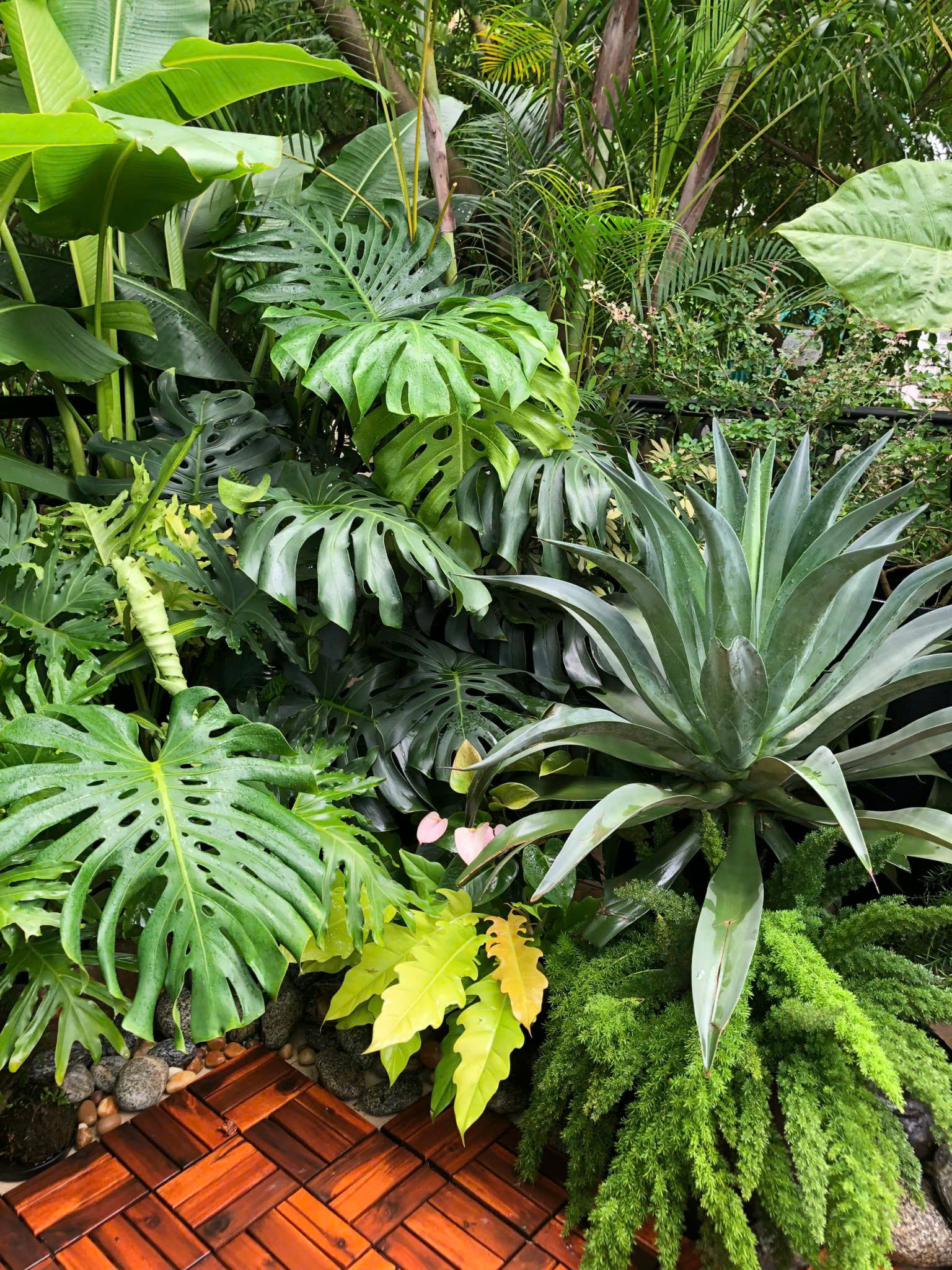 Các dòng tropical như philodendron, monstera, alocasia… tạo không khí nhiệt đới rõ nét