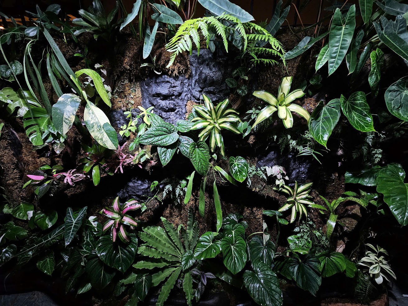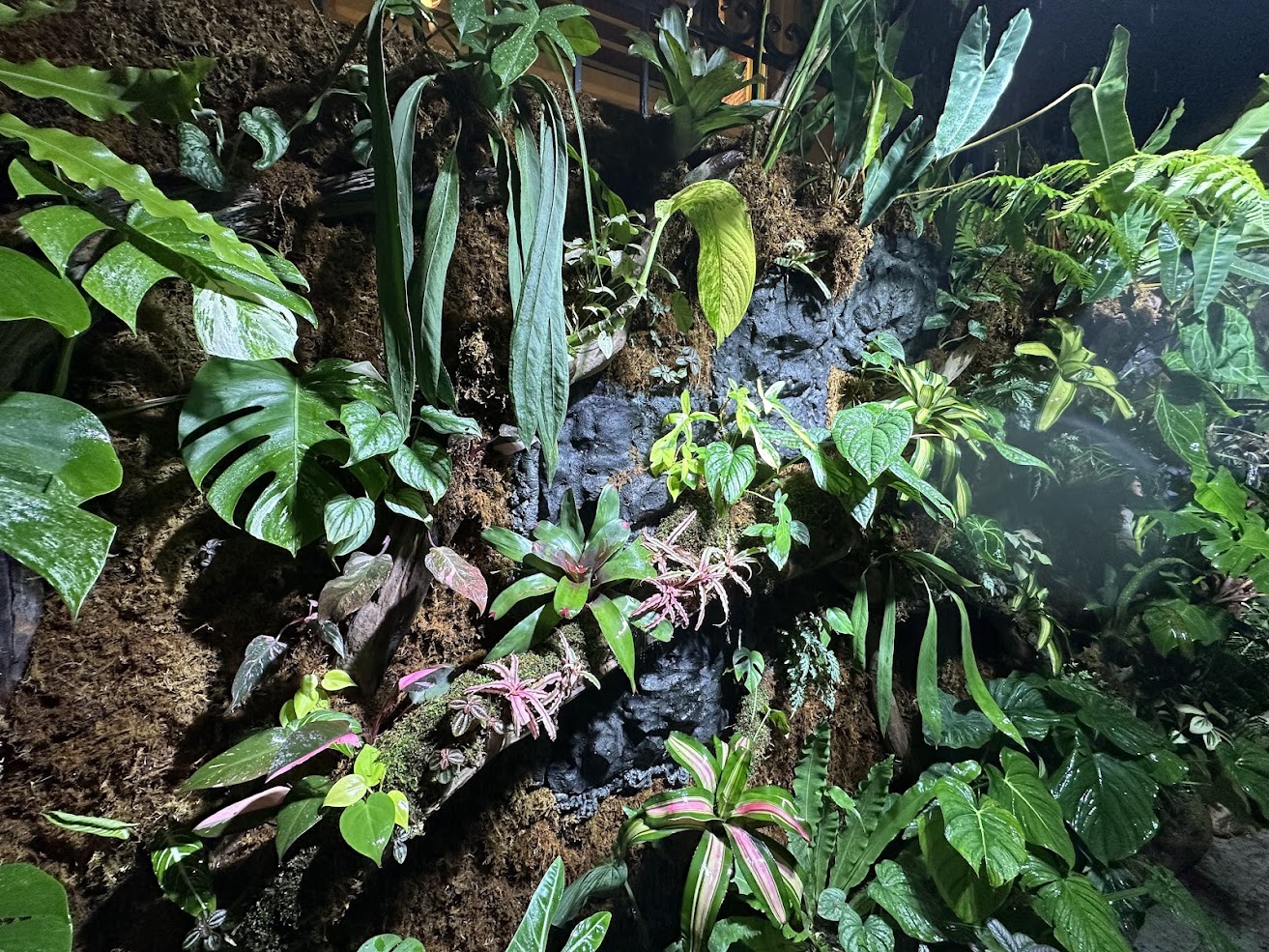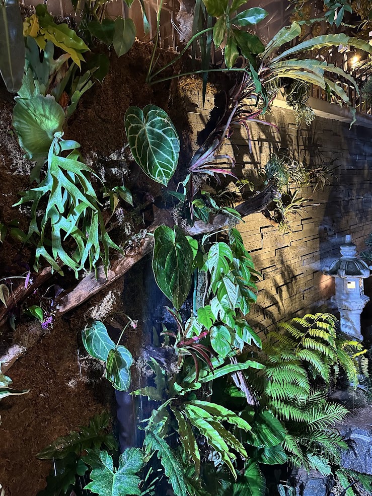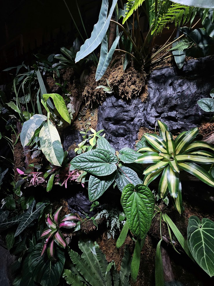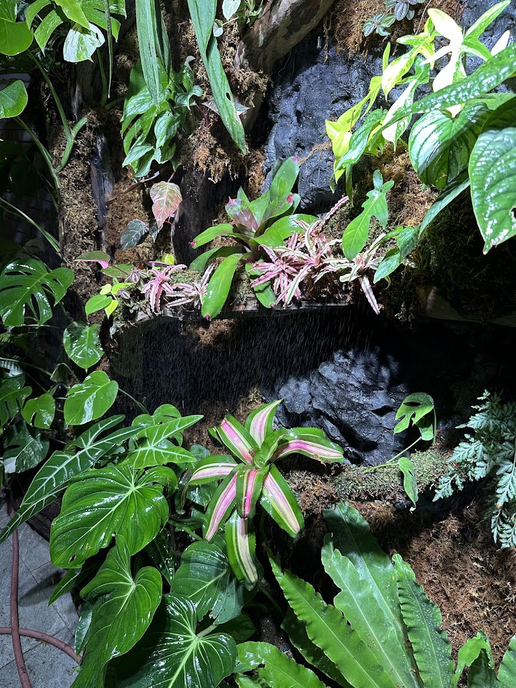 Bức tường được phối bằng nhiều dòng cây nội thất và kiểng lá cao cấp như: